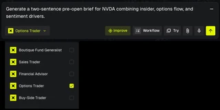 Generate a two-sentence pre-open brief for NVDA combining insider, options flow, and sentiment drivers.